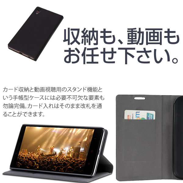 カード収納と動画視聴用のスタンド機能という手帳型ケースには必要不可欠な要素も勿論完備。