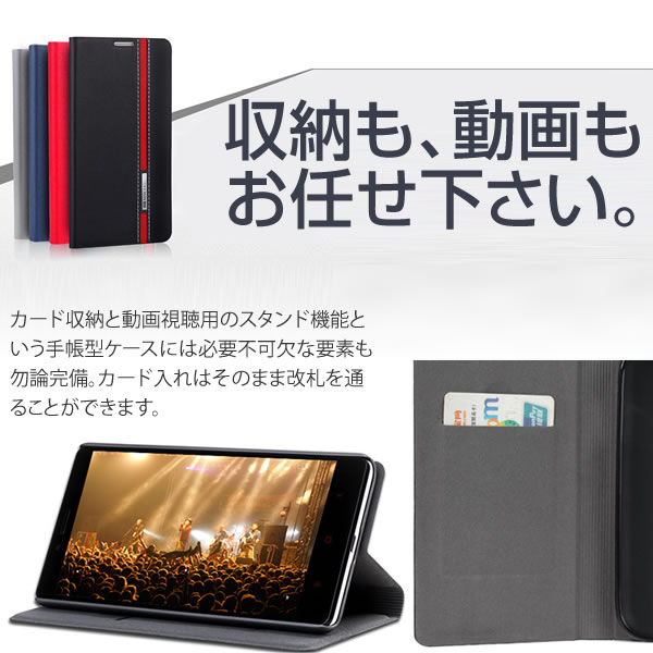カード収納と動画視聴用のスタンド機能という手帳型ケースには必要不可欠な要素も勿論完備。