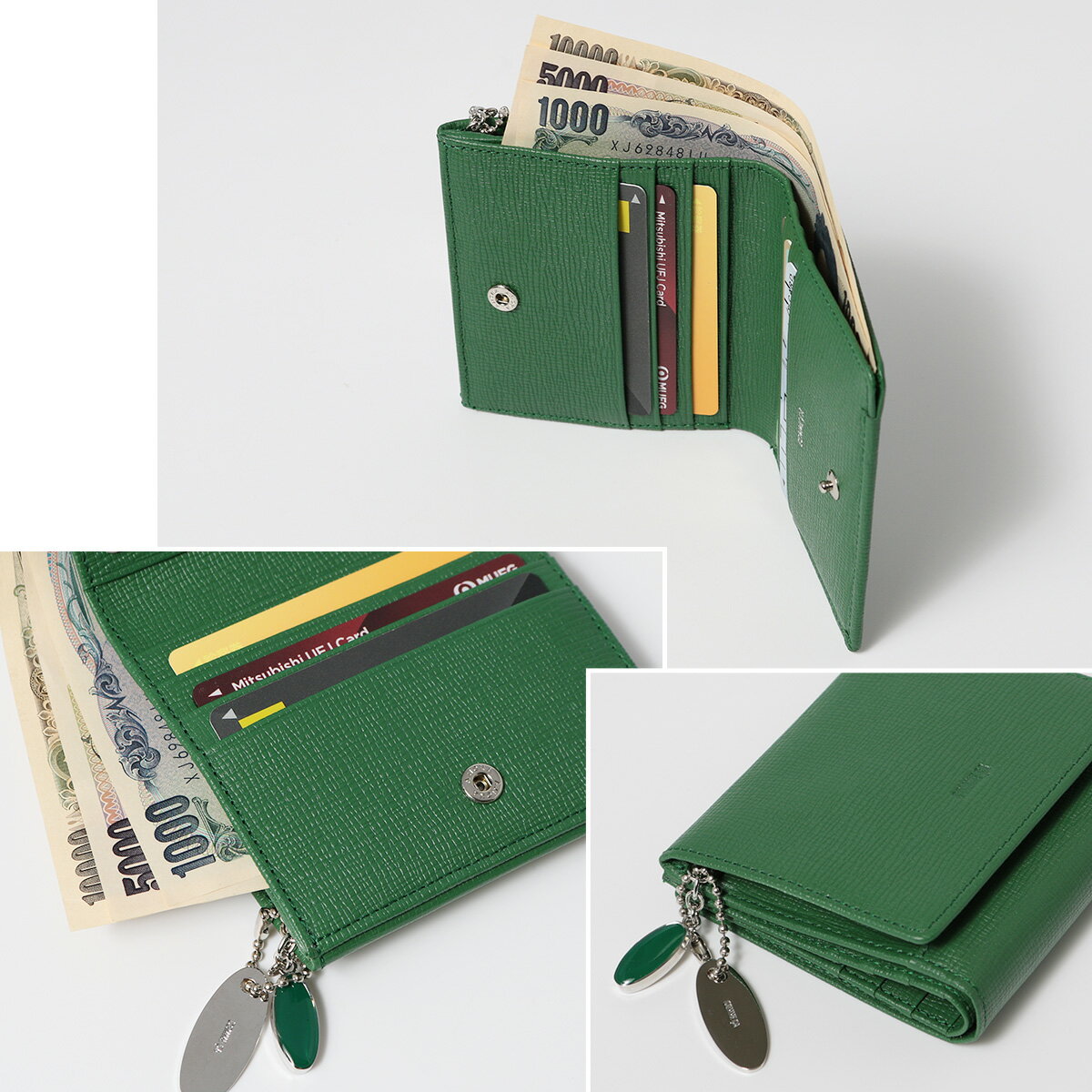 *シュリー‥‥パリのセーヌ河に架かった橋の名前 サイズ:約W10×H9×D2.5cm重量:約95g カラー:【10】ブラック【33】ピンク【60】イエロー【70】グリーン 素材:牛革(型押) 仕様:スナップボタン式開閉内側:BOX型小銭入れ×1カードポケット×8札入れ×1(仕切り有り) 付属:ブランド専用BOX ご注意ください: ● 商品の画像は、できるだけ商品に近いカラーにて掲載をしております。