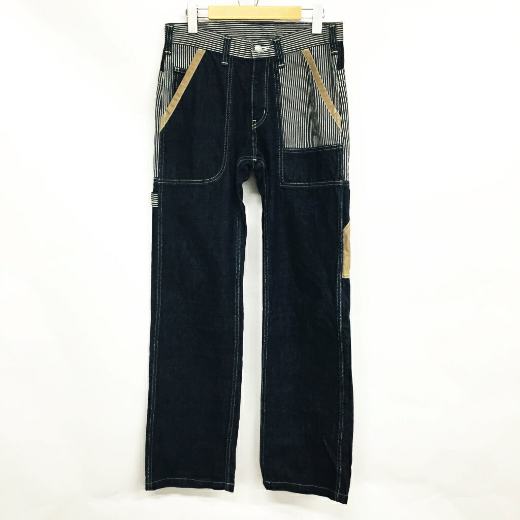 【値下げしました】■児島ジーンズ/コジマジーンズ■ペインターパンツ/ワークパンツ/ヒッコリー/KOJIMA GEANS/インディゴ/メンズ/ボトム/ボトムス/切替/デニム/パンツ/サイズ:W32【FS和泉中央店】【中古】191210/20200404
