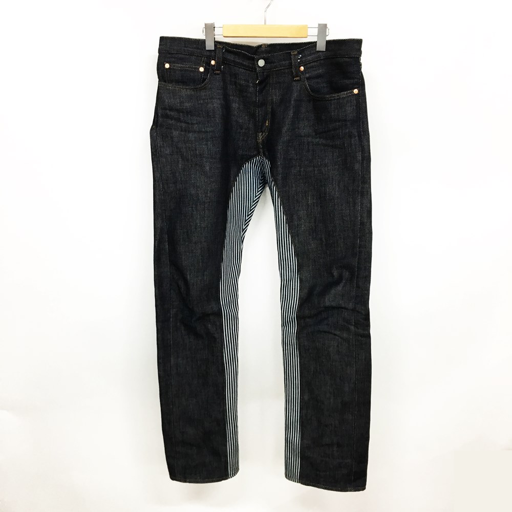 児島ジーンズ ストライプ切替デニムパンツ サイズ:38 カラー:ブルー【中古】【128 アメカジ】【鈴鹿 併売品】【128-200501-03LS】