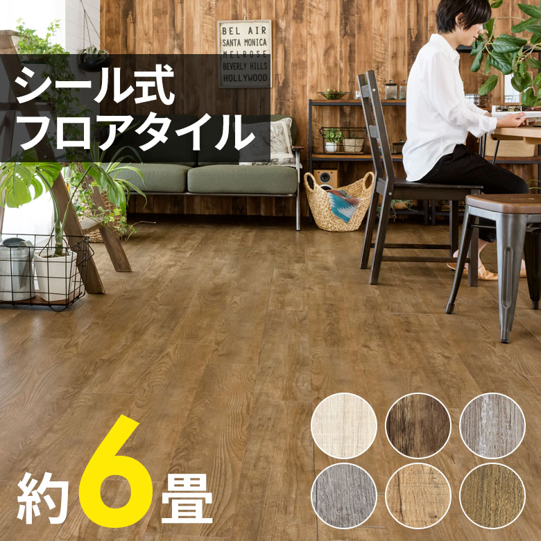木目調 フロアタイル 接着剤付き 貼るだけ フローリングタイル 36枚セット 接着タイプ リクレイムド全6色[8407] 【 床材 diy ウッドカーペット シート シール タイル フロアマット フロアタイル フロアーマット フローリング マット 3畳 床 接着剤不要 古材風 】